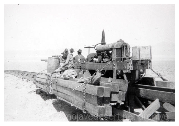 A railroad to the deposit seemed to be the only economical way to develop the find. The high cost of roadbed grading persuaded Wright to adopt a monorail system. Work began on the monorail in 1922 and the 28-mile line from Magnesia (two miles south of West End) through Layton Canyon and Wingate Pass to the Epsom salt works was completed in 1924.
