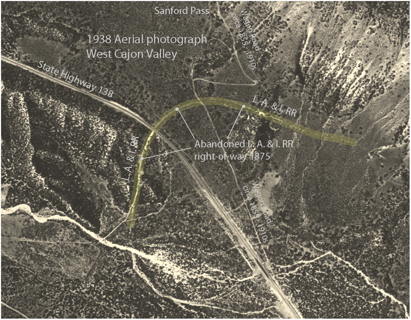 L.A. & Independence![]() Scant physical evidence remains of the L.A. & I. Railroad Arda Hensel photo - courtesy John Hockaday In 1874 the Los Angeles & Independence railway, to be built from Santa Monica to Independence, Inyo county, was organized by Governor Downey, F. P. F. Temple and other merchants of Los Angeles, backed by Senator John P. Jones. Several routes were proposed, but that through the Cajon Pass was selected, and San Bernardino was invited to co-operate in the enterprise, and thus secure a route to the sea coast. The road was constructed between Los Angeles and Santa Monica and put into operation in December, 1875. San Bernardino, however, seemed to feel that any road passing through the valley could not skip her, and made no decided move to secure the road. Considerable grading was done on the line this side of Los Angeles and in the Cajon Pass. The Guardian of January 16, 1875, reports, enthusiastically: "Work has been commenced on the Independence railroad in earnest. A force of forty men. under the energetic Crawford is engaged on the Cajon grade. Mr. Crawford tells us that in a few davs he will be re-enforced by 100 Chinamen. The Southern Pacific people have also a force at work in the Cajon. It seems their object is to head off the Narrow Gauge. Jones, however, is not likely to bluff worth a dollar. Stanford, we believe, declares his intention of building a Broad Gauge, to Panamint, via the Cajon. San Bernardino is certainly looming up in importance to the commercial world. And now, let us avail ourselves of our magnificent opportunities. Let energy, enterprise and liberality be the order of the day with our business men and men of property. And let us all act for the general good."The Los Angeles & Independence Railway never reached the San Bernardino Valley, however. Next |