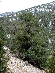 At the northern end of its range, singleleaf pinyon is found primarily on south-facing slopes and outcrops of decomposed granite. At the southern end of its range it occurs only on north-facing slopes.