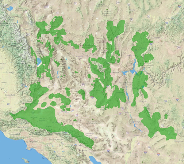 The species occupies parts of California, Nevada, Arizona, and Utah between roughly 2,000 and 6,000 feet. It functions as a marker of the Mojave Desert zone and provides cover and resources for many desert animals.