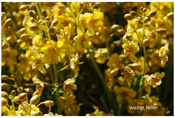 Spiny SennaSenna armata![]() Spiny Senna is a tough, shrubby plant native to the desert Southwest. Known for its sharp spines and bright yellow flowers, it thrives in some of the harshest desert environments and is well adapted to hot, dry conditions. Appearance: A woody shrub that typically grows 3 to 6 feet tall. It has stiff, gray-green branches with sharp spines and small, paired leaflets that often drop during drought. The cheerful yellow flowers bloom in clusters and are followed by long, narrow seed pods. Habitat: Found on rocky slopes, desert washes, and sandy flats. Common in the Mojave and Sonoran Deserts, often in very dry and exposed locations. Bloom Time: Usually blooms from March to May, depending on rainfall. May bloom again after summer monsoons. Pollinators: Attracts native bees and other insects. The bright yellow flowers stand out in the desert and offer a rich nectar source. Note: Spiny Senna may look harsh with its thorny stems, but its golden blooms are a welcome sight in the spring desert. It’s a good example of a desert plant that balances defense with beauty. |